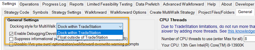 2. Float MultiWalk outside of TradeStation: