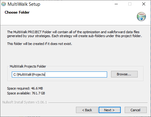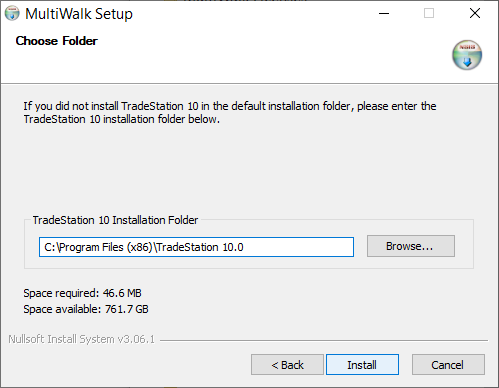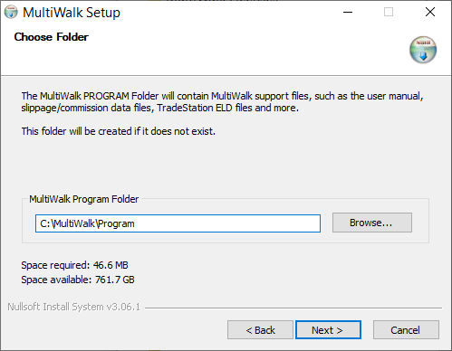 Do make this folder the same as TradeStation’s program folder.  Install MultiWalk in its own program folder as above.