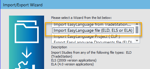 You can either double-click on the ELD names in the open folder to import them into TradeStation, or use TradeStation directly to import the files: